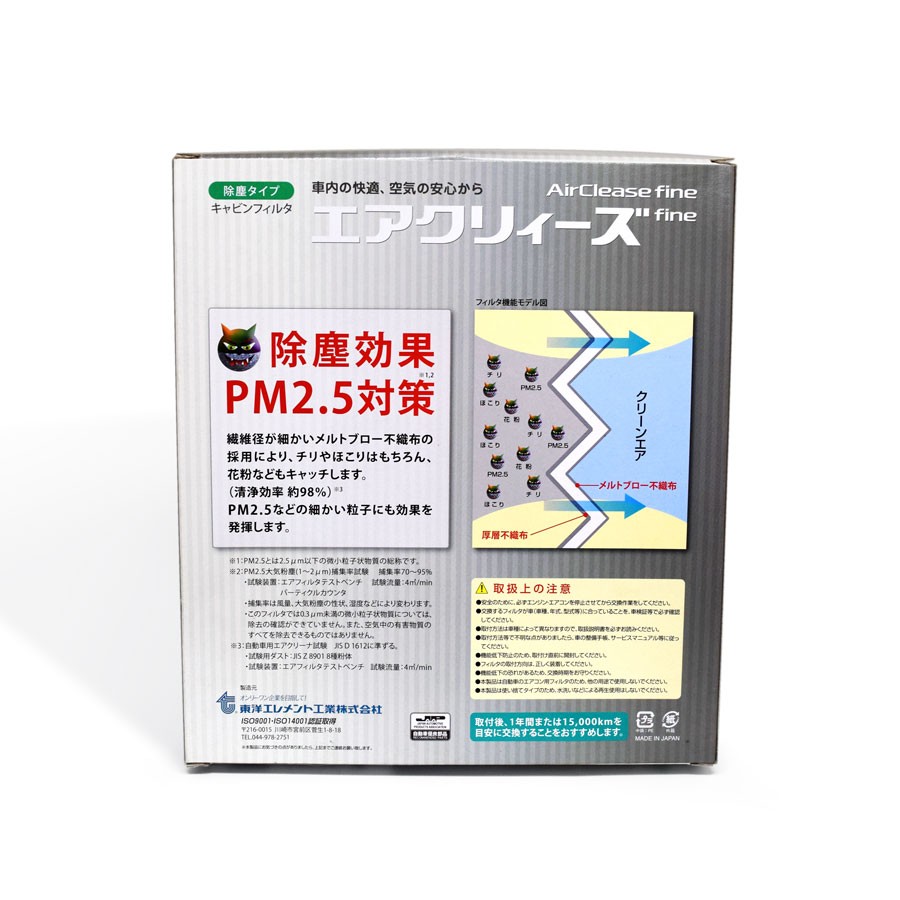 Air Clease "Fine" Cabin Filter from Toyo Element. Made in Japan.